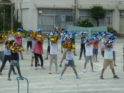 光るボンボンを手につけ、きらきらダンスを行います。曲の途中で場所の移動もあります。正しい位置に動くのは難しいことですが、とても上手です。