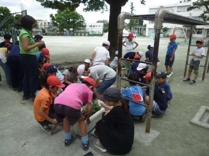 東京2020にむけた1年前開幕イベント等において、区外や海外からの訪問者への世田谷らしいおもてなしとして、児童の育てた花を飾るという取り組みがあります。玉川小では、4年生がその花を育てます。
