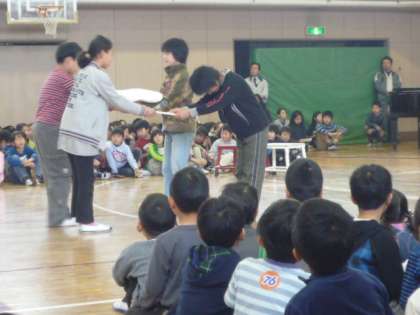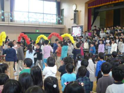 「6年生を送る会」の最後のイベントが、6年生から5年生への「引き継ぎ式」が行われました。正式に全校児童のいる場で、5年生がこれからの玉川小を引っ張っていくことを任されました。会の最後が6年生の退場で、5年生の花のアーチをくぐって退場しました。この後、6年生が、1年生から5年生の各学級に7,8名のグループに分かれて交流給食を行いました。下級生が、本当に感謝の気持ちで6年生の卒業を祝ってくれていて、体育館の会場やそれぞれの教室の給食の雰囲気がふんわりとした温かいものを感じました。