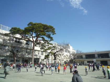 春がすぐそこまで来ているのに、冬に逆戻りしたかのような今日の中休み、校庭に出ると、子どもたちが元気に遊んでいました。空は抜けるような青空。思わず写真を撮りました。