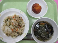 シシジューシー・もずくのスープ・サーターアンダーギー・牛乳