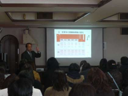 今日の午後1時50分から、ランチルームで、「平成23年度の新しい流れ」という題で、来年度の教育で変わる5つのことを説明しました。1つは、学習指導要領が変わり、各学年の授業時数が変わります。2つは、学校の正式名称が「なかたまの学び舎 世田谷区立玉川小学校」となります。世田谷9年教育が来年度から小学校で試行されます。3つは、振替なしの土曜授業日が年間10回あります。4つは、5,6年生で、週1時間の英語活動の時間が行われます。5つは、世田谷区立小学校で通知表がパソコン打ち出しのものに変わります。内容は、今までのものとほとんど変わりません。という内容です。今日で3回目、次回は、3月11日(金)午後1時50分からランチルームで行います。聞きそびれてしまった方、ぜひお越しください。