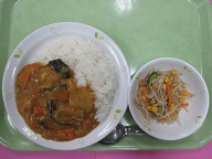 夏野菜のカレーライス・じゃこサラダ・牛乳