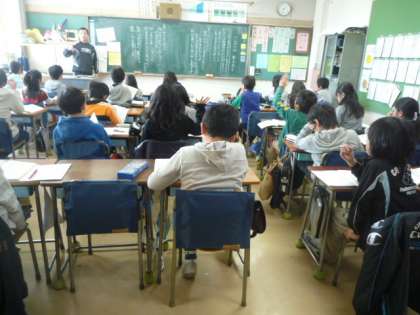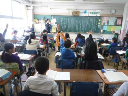 5時間目に、4年2組の国語「ごんぎつね」の授業を参観しました。単元の終末部分でしたが、ごんは兵十に見つけてほしかったのか、見つけられたくなかったのかを、文章を読んで根拠をもとに話し合いをする授業でした。子どもたちが及川先生の発問に、8分間くらい真剣に自分の考えを持つために教科書に線を引きながら考えていました。そのあとの意見交換では、たくさんの子が手を挙げて、自分の考えをしっかり発言していました。友達の考えに賛成、反対意見も出て、面白い話し合いが出来ていました。子どもたちの成長を強く感じたよい授業でした。