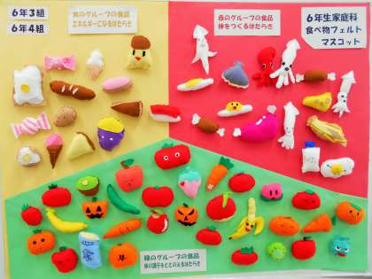 6年生が家庭科でつくったフェルトのマスコットが完成しました。