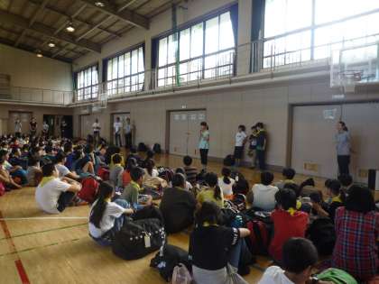 心配していたお天気でしたが、出発式の時は青空が広がりました。お休みの日にもかかわらずたくさんの先生がお手伝いに駆けつけてくれました。玉川小の子どもたち、この三日間で素敵な思い出をたくさん作ることができますように。