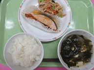 ごはん・さけのみそマヨネーズ焼き・おひたし・すましじる・牛乳