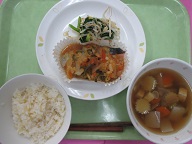 きびごはん・さけのちゃんちゃんやき・きくのおひたし・けんちんじる・牛乳