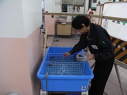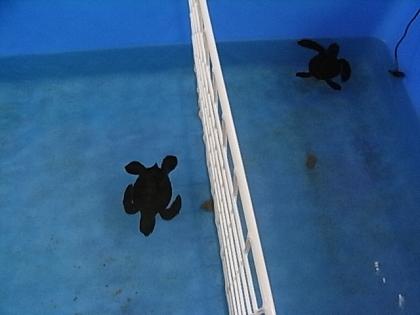 お休みの日のアオウミガメは、警備主事さんが面倒を見てくれています。今日は、田島さんが朝餌やりをしてくださいました。3匹ともとても元気で、自分の餌ではなくとなりの餌にばかり気をとられて、自分の餌に気がつかないおっちょこちょいもいました。とても可愛いです。