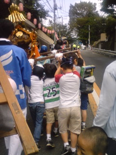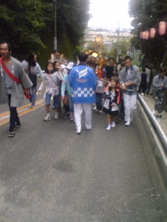 朝11時30分稲荷神社に子ども神輿が準備されました。子どもたちが担いで町の中を練り歩きます。稲荷坂を一時通行止めにして練り歩いています。子ども神輿の最終目的地は、森の児童館で、到着時刻は4時ごろだそうです。時間のある人は、ぜひ参加してみましょう。