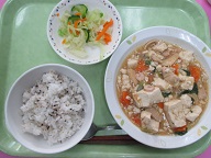 ごまごはん・ごもくいため・そくせきづけ・牛乳