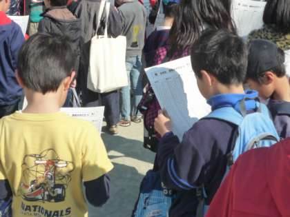 サクラが3分咲きの正門で子どもたちを迎えていると、どの子も目が輝いて登校していました。「おはようございます」の声もとても力が入った感じで、新学期にかける子どもたちの思いを強く感じました。校庭では、新3年と新5年の学級編成名簿が配られて、子どもたちは食い入るように眺めていました。