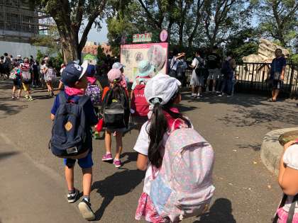 上野動物園に到着しました。集合写真を撮った後、園内を見学しています。