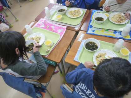 子どもたちのうれしそうな顔がいっぱいでした。このうれしそうな顔の後ろには、フレンドシップのお母さんたちの給食準備のお手伝いがあったからです。今週1週間、各学級に2名程度のお母さんが参加してくださり、子どもたちが楽しみにしている給食を段取り良く進めるお手伝いをしてくださっています。ありがとうございます。