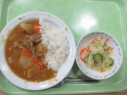 だいこんどの のカレーライス・野菜のあまずあえ・牛乳