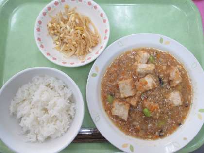 今日の給食では、生揚げ、えだまめ、豆もやし、しょうゆです。