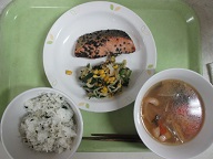 わかめとじゃこのごはん・さけの南部焼き・いそあえ・とっちゃなげじる・牛乳