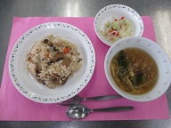 きのこピラフ・野菜サラダ・五目スープ・牛乳