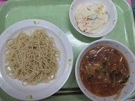 今日は、2年3組が 調理員さんと一緒にランチルームで給食を食べました。