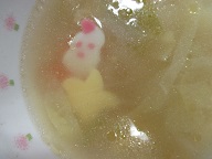 照り焼きチキンバーガー・雪だるまのスープ・フルーツ白玉・牛乳