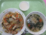 中華丼・ワンタンスープ・ミルクゼリー・牛乳