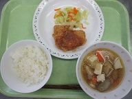 ごはん・みそかつ・キャベツのソテー・けんちんじる・牛乳
