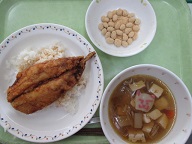 今日は、節分なので いわしと豆をつかった給食にしました。