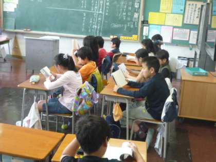 おはなしバスケットの読み聞かせがないほかの学級では、それぞれが自分の持ってきた本や学級文庫の本をとても静かに真剣に読んでいる姿を見ることができます。心が落ち着いた状態で、1時間目の授業が進められます。