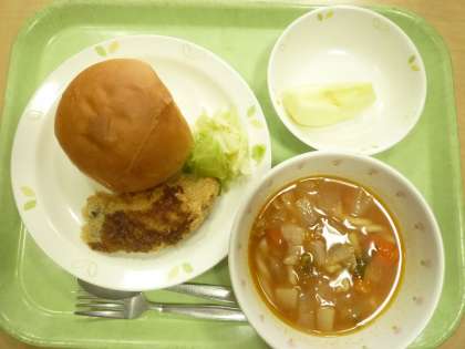 セルフフィッシュサンド・ミネストラスープ・りんご・牛乳