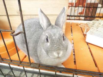 学校で飼っているウサギ「マイケル」です。かわいい表情をしています。休みの間は、事務室で大切に飼っています。