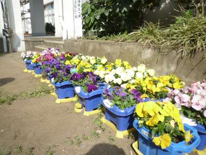 2年生が苗を植えたパンジーがきれいに咲いています。