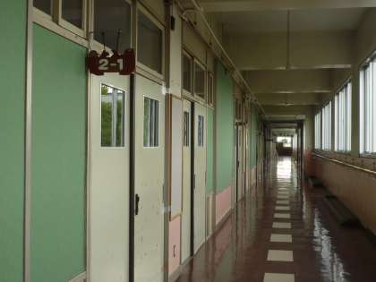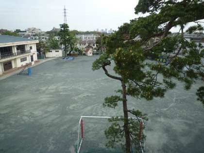 2年生の教室は、3階。廊下の様子と4組からの校庭からの風景です。ちょっと高いところから見ると、景色も違って見えますね。