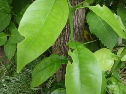 キャベツとミカンの葉です。虫が食べたあとがあります。さて、どんな虫が食べたのでしょうか。