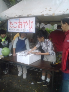 森の児童館でお祭りをやりました。玉小おやじの会では、たこ焼きを作って販売しました。とても美味しいと大評判でした。たくさんの人が参加しています。