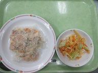 エビクリームライス・じゃがいものハニーサラダ・牛乳