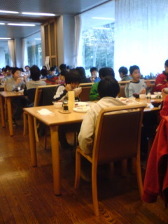 おはようございます。多くの子どもたちは6時の起床ぎりぎりまでしっかり寝ていました。6時20分からの朝会の様子と朝食の様子です。