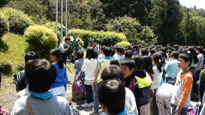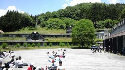 関越自動車道を通って、沼田に到着。そして、川場村に入って山道に入り、中野ビレッジに着きました。世田谷とは比べることができない大自然の中で、ここをベースに2泊3日の生活を送ります。子どもたちも到着するや興奮状態です。開室式のあと、ビリッジの庭で早速美味しいお弁当を食べました。