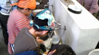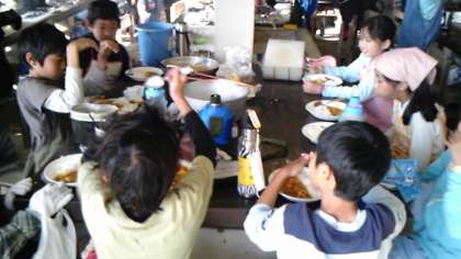 みんなで協力して作ったカレーライスが上手に(?)出来上がりました。みんな満足そうに食べていました。後片付けもしっかりやろうとしていました。