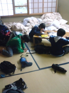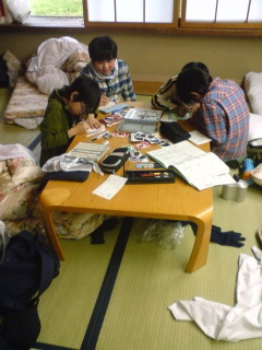 ふじやまビレッジでの子どもたちの様子です。家に葉書を書いていたり、ウノで遊んでいたり楽しく過ごしています。