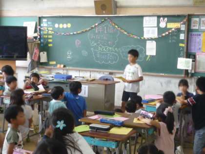 去年から始めた異学年交流活動「玉小タイム」が、本年度初めて行われました。今年は、6年生と2年生、5年生と3年生、4年生と1年生の組み合わせで、1年間兄弟学級として交流します。今日は最初なので、自己紹介ゲームなどを中心にお互いの名前を紹介し合いました。高学年が低学年をリードして交流が深まり、ふだんの学校生活の中でコミュニケーションが広がることを望んでいます。