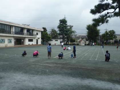 今年は、学年別の運動会となります。例年通りではないので、先生たちは試行錯誤しながら準備をすすめています。放課後、校庭に運動会用の印をつけ、ライン引きをしました。ところが、突然大雨が降ってきて・・・大変でした。