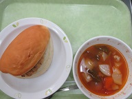 肉じゃがコロッケパン・ミネストローネスープ・牛乳