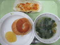 ミルクパン・ポテトクリーム焼き・野菜スープ・手作りリンゴジャム・牛乳