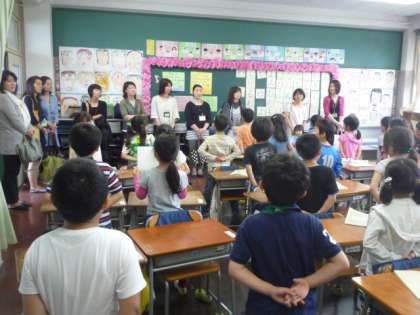 今日から23日(木)まで学校公開週間です。あいにくの雨の中、1年生の保護者の方を中心に、保護者の方がいらっしてくださいました。1年1組では、日本語の授業で、子どもたちが漢詩を暗唱して、お母さん方に披露してくれました。1年生のすごさに、びっくりさせられました。5年2組3組で、体育館でスポーツテストのシャトルランをしていました。