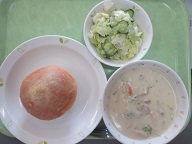 ビスキュイパン・クリームシチュー・フレンチサラダ・牛乳