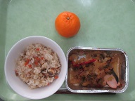 とりめし・さけのチャンチャンやき・ぽんかん・牛乳