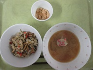 いそごはん・いわしのつみれ汁・きなこまめ・牛乳