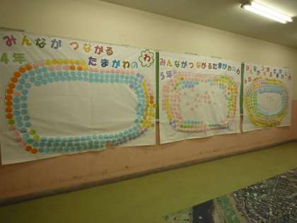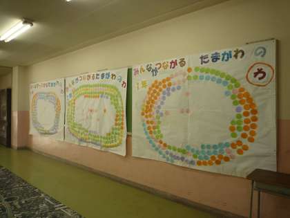 アートウィークの感想を伝え合う活動をしています。あたたかいメッセージに笑顔になります。笑顔の輪が広がっています。