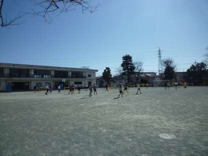 6年生がテニス?のようなスポーツをしています。あたたかな春の日差しのもと、みんな楽しそうです。
