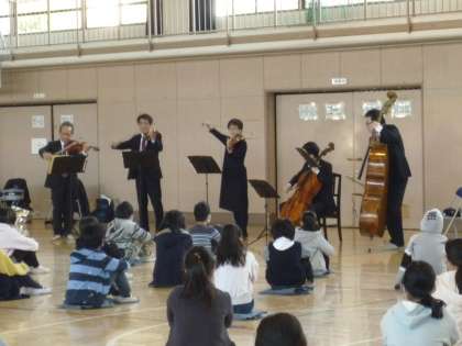 音楽鑑賞教室は、玉川小の体育館で行われました。素敵な音楽に、皆、聴き入っていました。やはり、本物の演奏は素晴らしいです。